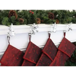 Haute Decor Silver MantleClip Stocking Holder With Assorted Holiday Icons (4-Pack)
