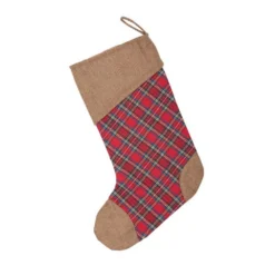 VHC Brands 15 In. 100% Cotton Red Festive Burlap Farmhouse Christmas Decor Stocking