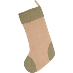 VHC Brands 20 In. Cotton Green Vintage Burlap Stripe Farmhouse Christmas Decor Stocking