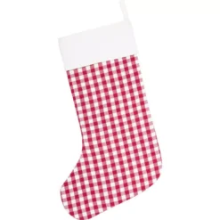 VHC Brands 20 In. Cotton Red Emmie Farmhouse Christmas Decor Patch Stocking