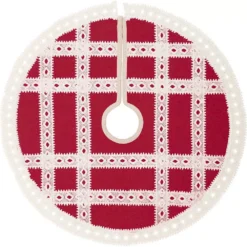 - Lace forms latticework over entire tree skirt