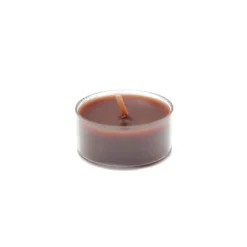These tea light candles burn for up to 4 hours. The flame is strong and quiet. The quality in this candle shows in the glow. They come in a metal container and flat on top.